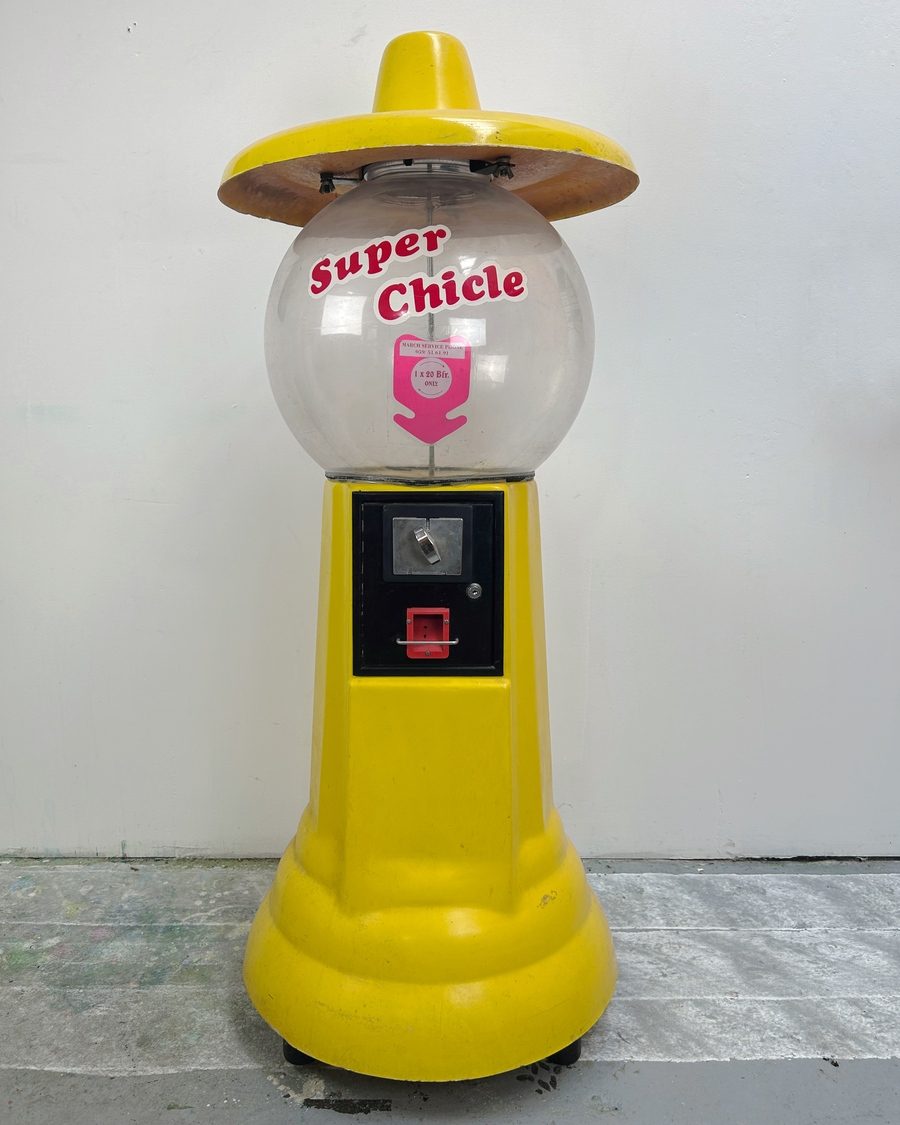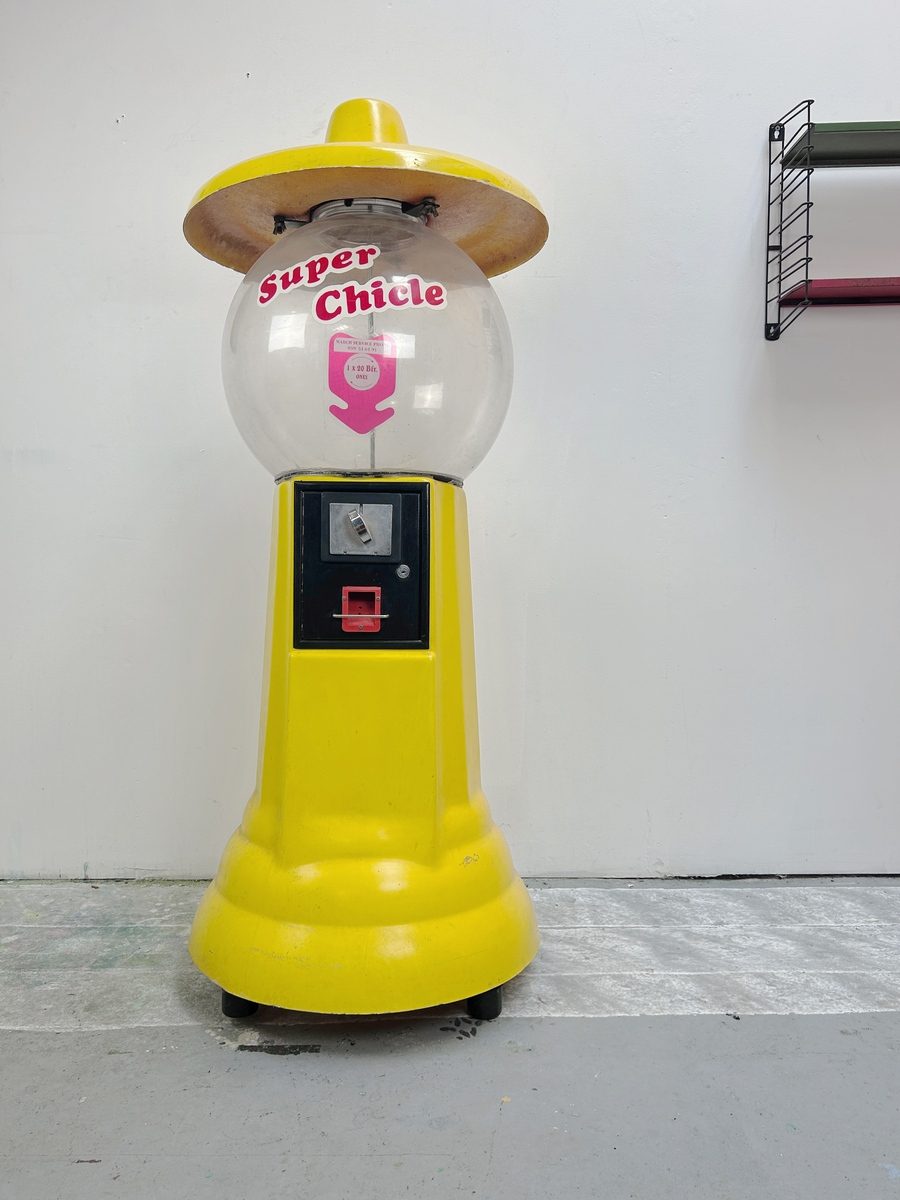 On est pile entre la pièce de déco fun et l’objet collector. Ce distributeur “Super Chicle”, tout droit sorti d’une friterie belge, date des années 60 et affiche fièrement son jaune citronné et son énorme chapeau façon sombrero. C’est le genre de pièce qu’on n’oublie pas une fois qu’on l’a vue.